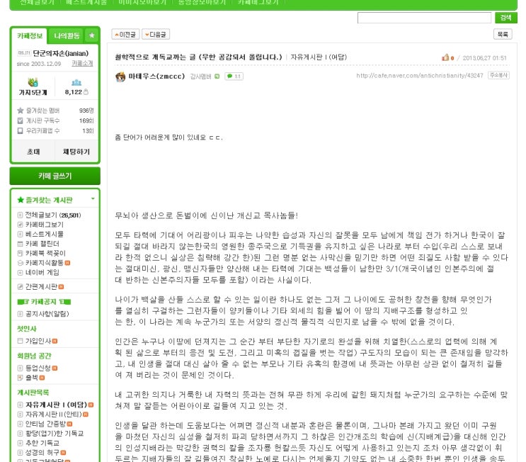 철학적으로 기독교를 주님의 집을 어떻게 비판할 수있다는 건지요.