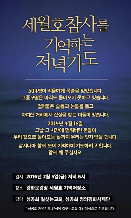 세월호 참사를 기억하는 저녁기도 모임이 있다.