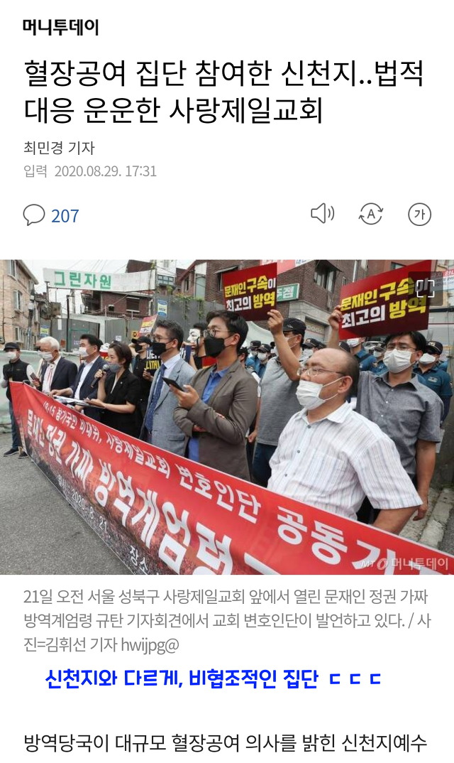 최근 기독교인들의 만행으로 코로나가 전국에 퍼지면서