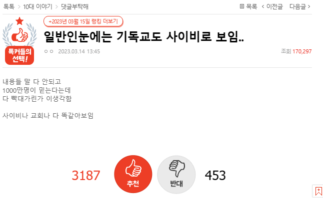 (링크 : 일반인눈에는 기독교도 사이비로 보임.. | 네이트 판 (nate.com))