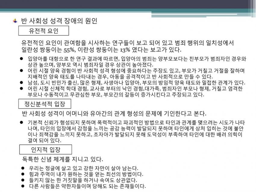 위의 성격장애들의 특징들을 보면 한국, 한국인들의 행동양상과 매우 비슷한점이 많음