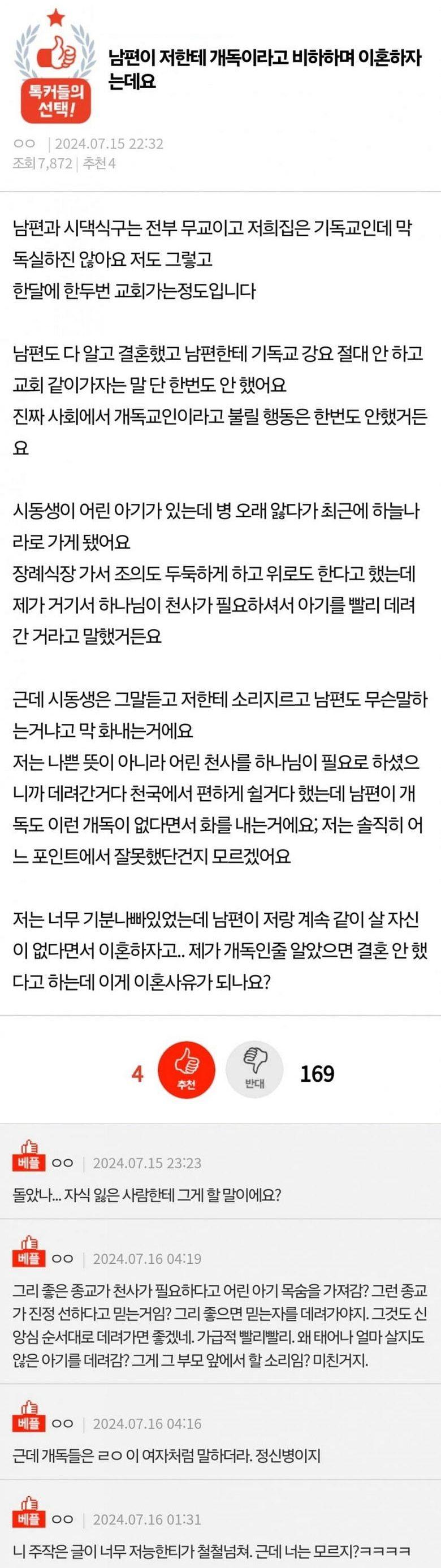 자유게시판 자유글 () 남편이 저한테 개독이라고 비하하며 이혼하자는데요 무명의덕 2024.12.27 - 08:33 저게 애 잃은 부모한테 할 소린지. 에혀. 추천 0 신고 Attached file 775528cb3db121f67158a386c1c044e4.jpg 256.2KB 5 이 게시물을.. 0 무명의덕 다음 레벨 90 - 총 획득 0 ( 필요 90 = 획득 0 + 남음 90 | 0%) 무명의덕 님의 최근 글 작성 글이 없습니다. 무명의덕 님의 최근 댓글 작성 댓글이 없습니다. 글쓴이의 서명작성글 감추기 댓글3 0 무명의덕 2024.12.27 - 08:33 #5194 비회원은 댓글을 읽을 수 없습니다 댓글 수정 삭제 0 무명의덕 2024.12.27 - 08:33 #5195 비회원은 댓글을 읽을 수 없습니다 댓글 수정 삭제 0 무명의덕 2024.12.27 - 08:33 #5196 비회원은 댓글을 읽을 수 없습니다 댓글 수정 삭제 댓글 입력 에디터 전환 글쓴이 비밀번호 댓글 등록 댓글 쓰기 에디터 사용하기 닫기 글쓴이 비밀번호 댓글 등록 view_headline 목록 수정 삭제 14px 이제, 종교를 그 본래의 자리로 되돌려 놓아야하지 않을까요? 목록 view_headline 쓰기 수정 삭제 3 × CLOSE - KEEP CLOSED 전체 자유글 3705 경험담 636 컬럼 34 비판 12 뉴스 4 기본 (4,412) 제목 날짜 수정 조회 댓글 추천 비추 제목+내용제목내용댓글닉네임등록일태그 분류 정렬 검색 📌 정체성과 운영방향 및 레벨 등급 1 2025.07.07 - 19:32 1994 1 번호 분류 제목 글쓴이 날짜 조회 수 추천 수 4412 자유글 조곤조곤TV 시사대담 제1회 - "극우주의와 기독교" 1부 역사학자 전우용 교수 N 미역국먹다깨달음 7시간 전 78 0 4411 자유글 서울 한복판에 이런 곳이? | 일하고 싶지만 일자리가 없다 | 자원봉사하는 노숙인 | 용산역 텐트촌 거주자들 | EBS다큐 2 냥냥펀치2000 2025.10.03 540 6 4410 자유글 박정희 시리즈 4 2 개독 2025.10.03 540 0 4409 자유글 한국 우파가 '봉준호'와 '한강'을 인정 못하는 진짜 이유 2 아멘하면현금나옴? 2025.10.03 533 0 4408 자유글 [주간 처치독] 2025 교단 총회 결산(1/2) - 여자는 목사하지 마라 2025.10.03 1 아멘하면현금나옴? 2025.10.03 550 0 4407 자유글 "내 밑으로 다 집합!" 트럼프와 국방장관, 장군들에게 무슨 얘기? / SBS / 편상욱의 뉴스브리핑 2 교회카페마진30퍼실화냐 2025.10.03 598 0 4406 자유글 "휴대전화 두고 흡연장에서…" 국가전산망 장애 담당 공무원 세종청사서 투신 냥냥펀치2000 2025.10.03 587 0 4405 자유글 철학자가 해설하는 가장 좋았던 국무회의. 서민들 괴롭히는 검찰 기소 #국가괴롭힘 #검찰기소 #이재명대통령 #국무회의생중계 #철학박구용 #겸손은힘들다 #온뉴스 교회카페마진30퍼실화냐 2025.10.03 558 0 4404 자유글 대가리 꽃밭 망상증 정신병자들은 교회를 다닌다. 개독냄새 2025.10.03 621 0 4403 자유글 교회가지마...정신병걸려 1 뚜루뚜루 2025.10.01 1077 0 4402 자유글 특별법 제정부터 길거리 포교 금지까지? 해외의 종교 범죄 대응법 탈탈 털어봄 2 냥냥펀치2000 2025.10.01 1134 0 4401 자유글 사실 교회 안에서 겉보기에는 정통(正統)인데, 실제로 따지고 보면 이단 신앙인 패턴을 알아보자 개독냄새 2025.09.30 1393 0 4400 자유글 천국 미끼 노동착취: 교회판 가스라이팅 알바 시스템 교회쟁이사절 2025.09.24 2928 0 4399 자유글 천국을 미끼로 한 교회신도 노동 착취 시스템 개독냄새 2025.09.24 2877 0 4398 자유글 오래 다닐수록 더 개독이 되는 이유 1 목사님의탈세특강 2025.09.24 2949 0 4397 자유글 [주간 처치독] 인구 소멸 위험 지역서 살아가는 교회들 2025.06.13 퍼킹예수 2025.09.22 3327 0 4396 자유글 예장합동 "목사는 남성만, 여성은 강도사까지만 목사탈세 2025.09.22 3397 13 4395 자유글 정통기독교에서 말하는 이단.사이비로 찍히지 않는 방법 미역국먹다깨달음 2025.09.22 3301 0 4394 컬럼 이제, 종교를 그 본래의 자리로 되돌려 놓아야하지 않을까요? 퍼킹예수 2025.09.20 3656 0 4393 자유글 근본을 제시하는 것은 옳지만, 근본주의가 되어서는 안 된다 목사탈세 2025.09.19 3897 0 1 2 3 4 5 6 7 8 9 10 .. 221 / 221 GO 글쓰기