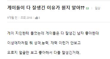 자유게시판 자유글 () 게이들이 게이들을 싫어하는 이유 무명의덕 2024.12.27 - 18:55 이거 ㄹㅇ임 게이들한테 인기 있는 남자연예인 순위 이런거 보면 얼굴 몸매 다따지고 눈 졸라 높음 오히려 사람들이 게이같다고 하는 차은우 송중기 이런 얼굴을 게이들이 싫어한다더라 얼핏 들었는데 맞말이었네 추천 0 신고 Attached file 1728024343.webp.jpg 148.2KB 101728029830.png.jpg 54.2KB 91728041159.png.jpg 51.2KB 121730200721.png.jpg 34.8KB 121728038085.png.jpg 35.9KB 141730310790.png.jpg 56.9KB 111733228282.png.jpg 57.4KB 111733228285.png.jpg 13.0KB 10 이 게시물을.. 0 무명의덕 다음 레벨 90 - 총 획득 0 ( 필요 90 = 획득 0 + 남음 90 | 0%) 무명의덕 님의 최근 글 작성 글이 없습니다. 무명의덕 님의 최근 댓글 작성 댓글이 없습니다. 글쓴이의 서명작성글 감추기 댓글1 0 무명의덕 2024.12.27 - 18:55 #5375 비회원은 댓글을 읽을 수 없습니다 댓글 수정 삭제 댓글 입력 에디터 전환 글쓴이 비밀번호 댓글 등록 댓글 쓰기 에디터 사용하기 닫기 글쓴이 비밀번호 댓글 등록 view_headline 목록 수정 삭제 14px 이제, 종교를 그 본래의 자리로 되돌려 놓아야하지 않을까요? 목록 view_headline 쓰기 수정 삭제 1 × CLOSE - KEEP CLOSED 전체 자유글 3705 경험담 636 컬럼 34 비판 12 뉴스 4 기본 (4,412) 제목 날짜 수정 조회 댓글 추천 비추 제목+내용제목내용댓글닉네임등록일태그 분류 정렬 검색 📌 정체성과 운영방향 및 레벨 등급 1 2025.07.07 - 19:32 1994 1 번호 분류 제목 글쓴이 날짜 조회 수 추천 수 4412 자유글 조곤조곤TV 시사대담 제1회 - "극우주의와 기독교" 1부 역사학자 전우용 교수 N 미역국먹다깨달음 7시간 전 78 0 4411 자유글 서울 한복판에 이런 곳이? | 일하고 싶지만 일자리가 없다 | 자원봉사하는 노숙인 | 용산역 텐트촌 거주자들 | EBS다큐 2 냥냥펀치2000 2025.10.03 540 6 4410 자유글 박정희 시리즈 4 2 개독 2025.10.03 540 0 4409 자유글 한국 우파가 '봉준호'와 '한강'을 인정 못하는 진짜 이유 2 아멘하면현금나옴? 2025.10.03 533 0 4408 자유글 [주간 처치독] 2025 교단 총회 결산(1/2) - 여자는 목사하지 마라 2025.10.03 1 아멘하면현금나옴? 2025.10.03 550 0 4407 자유글 "내 밑으로 다 집합!" 트럼프와 국방장관, 장군들에게 무슨 얘기? / SBS / 편상욱의 뉴스브리핑 2 교회카페마진30퍼실화냐 2025.10.03 598 0 4406 자유글 "휴대전화 두고 흡연장에서…" 국가전산망 장애 담당 공무원 세종청사서 투신 냥냥펀치2000 2025.10.03 587 0 4405 자유글 철학자가 해설하는 가장 좋았던 국무회의. 서민들 괴롭히는 검찰 기소 #국가괴롭힘 #검찰기소 #이재명대통령 #국무회의생중계 #철학박구용 #겸손은힘들다 #온뉴스 교회카페마진30퍼실화냐 2025.10.03 558 0 4404 자유글 대가리 꽃밭 망상증 정신병자들은 교회를 다닌다. 개독냄새 2025.10.03 621 0 4403 자유글 교회가지마...정신병걸려 1 뚜루뚜루 2025.10.01 1077 0 4402 자유글 특별법 제정부터 길거리 포교 금지까지? 해외의 종교 범죄 대응법 탈탈 털어봄 2 냥냥펀치2000 2025.10.01 1134 0 4401 자유글 사실 교회 안에서 겉보기에는 정통(正統)인데, 실제로 따지고 보면 이단 신앙인 패턴을 알아보자 개독냄새 2025.09.30 1393 0 4400 자유글 천국 미끼 노동착취: 교회판 가스라이팅 알바 시스템 교회쟁이사절 2025.09.24 2928 0 4399 자유글 천국을 미끼로 한 교회신도 노동 착취 시스템 개독냄새 2025.09.24 2877 0 4398 자유글 오래 다닐수록 더 개독이 되는 이유 1 목사님의탈세특강 2025.09.24 2949 0 4397 자유글 [주간 처치독] 인구 소멸 위험 지역서 살아가는 교회들 2025.06.13 퍼킹예수 2025.09.22 3327 0 4396 자유글 예장합동 "목사는 남성만, 여성은 강도사까지만 목사탈세 2025.09.22 3397 13 4395 자유글 정통기독교에서 말하는 이단.사이비로 찍히지 않는 방법 미역국먹다깨달음 2025.09.22 3301 0 4394 컬럼 이제, 종교를 그 본래의 자리로 되돌려 놓아야하지 않을까요? 퍼킹예수 2025.09.20 3656 0 4393 자유글 근본을 제시하는 것은 옳지만, 근본주의가 되어서는 안 된다 목사탈세 2025.09.19 3897 0 1 2 3 4 5 6 7 8 9 10 .. 221 / 221 GO 글쓰기