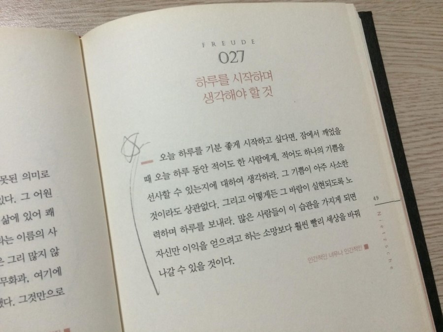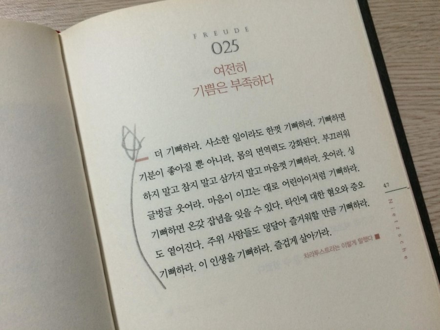 모태신앙인 나에게 이 책의 앞부분에서 니체를 설명할 때 내세운 '반기독교'라는 글자는 호기심을 자극했다. 이 책은 니체의 명언들을 모아둔 책이다.